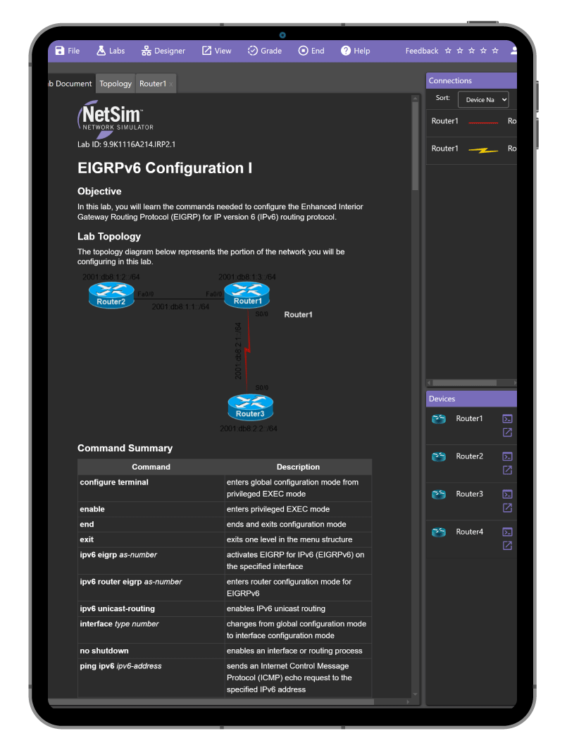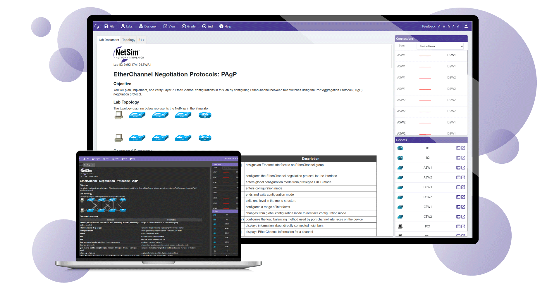 NetSim includes pre-configured labs, along with everything needed to complete the objectives.